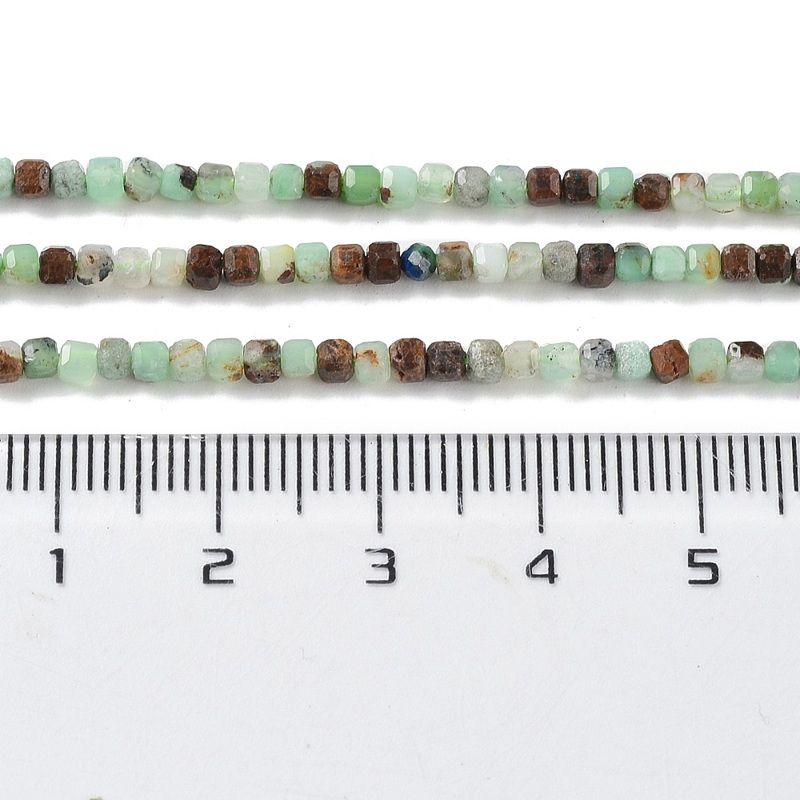 Хризопраз фасетирани мъниста кубче 2.5x2.5x2.5 мм - наниз около 39 см