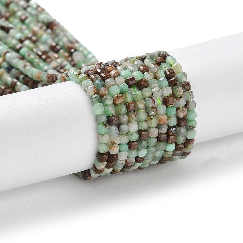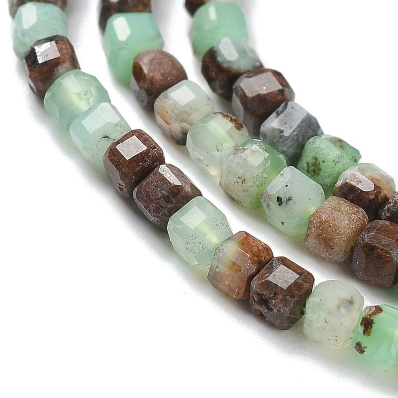 Получавате един наниз от фасетирани кубчета хризопраз с дължина около 39 см, готов за използване в творческите ви проекти.
