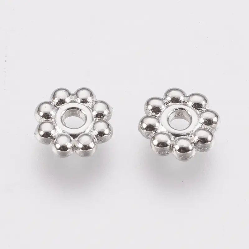 Разделител сребрист, мъниста цвете 5.5~6x1.5~2мм - 20 броя