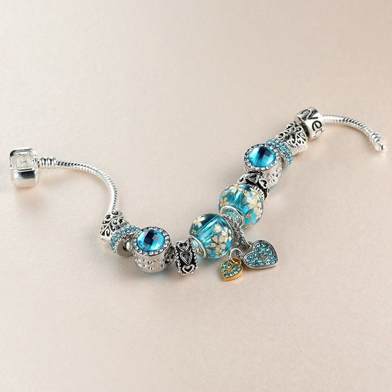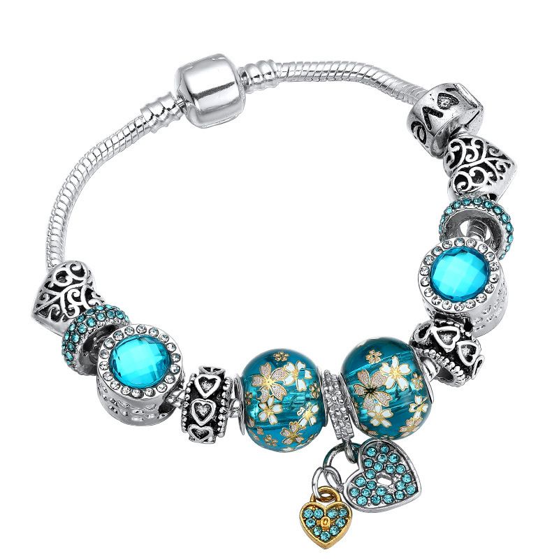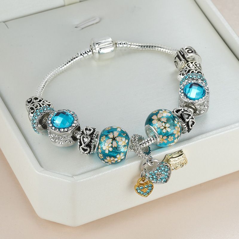 Европейски стил гривна Sky Blue реплика на Пандора, дължина 19 см- 1 бр.
