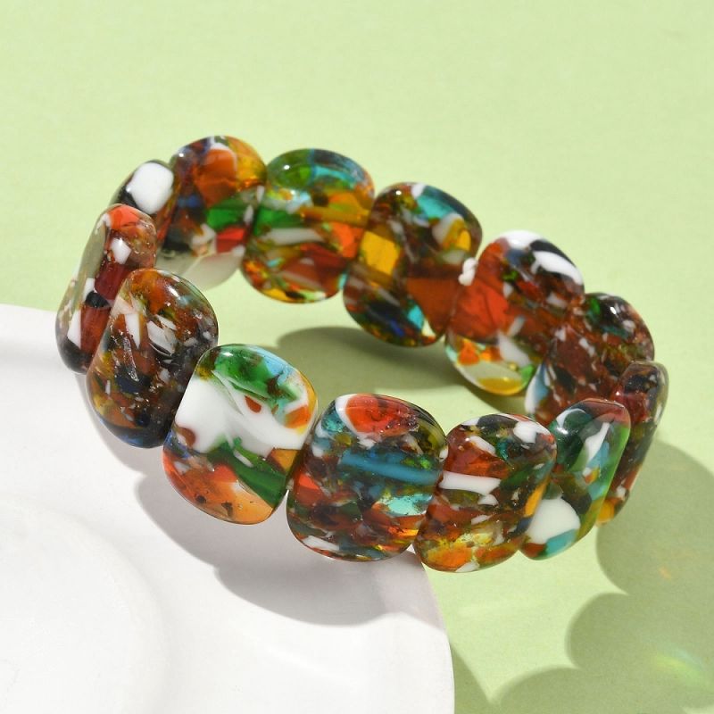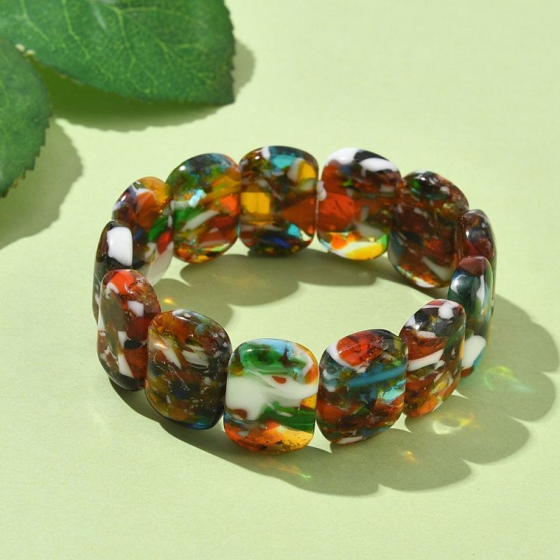 Добавете цветен акцент към визията си с тази уникална гривна от мъниста тип "лампуърк" в смесени цветове. Подходяща е за жени, които ценят оригиналните аксесоари.