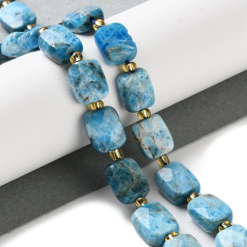 Добавете елегантност към бижутата си с този наниз от полускъпоценни камъни Апатит. Фасетирани, правоъгълни мъниста, нетретирани, идеални за уникални проекти.
