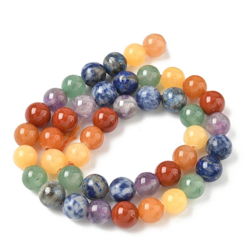 Многоцветен наниз от чакра камъни 8мм - 44 бр мъниста.