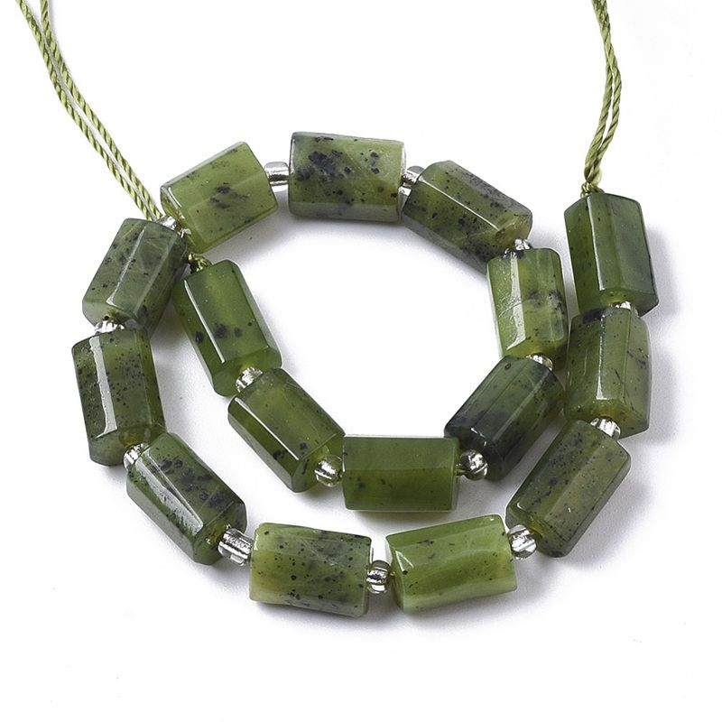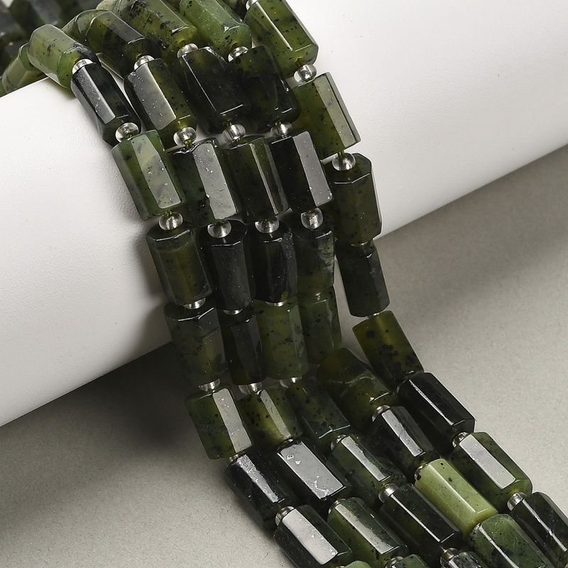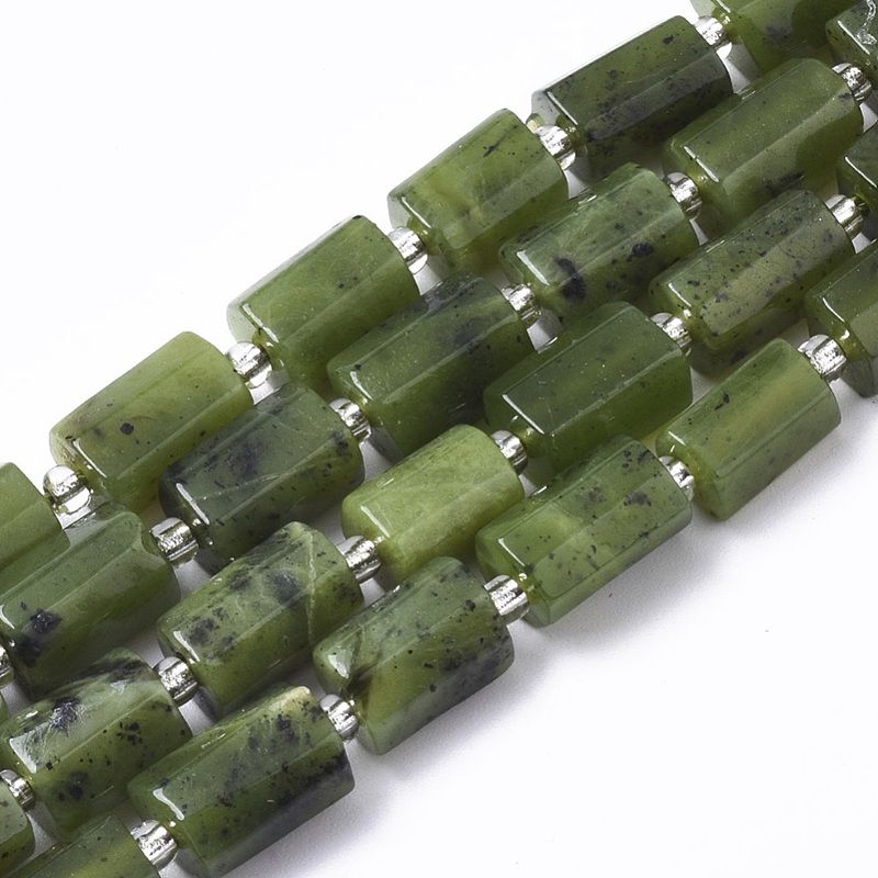 Добавете естествена красота към вашите проекти с този наниз от фасетирани, цилиндрични мъниста от канадски нефрит, нетретиран.