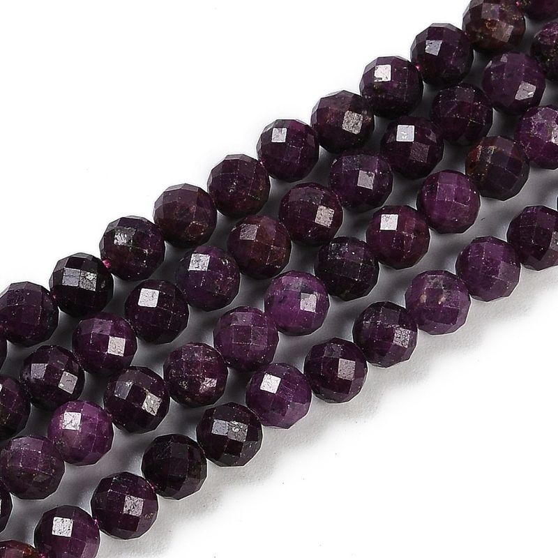 Изящен наниз от естествен рубин, клас АА, с нетретирани, фасетирани, кръгли мъниста. Перфектен избор за създаване на елегантни бижута с неповторим стил.