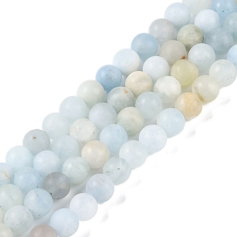 Потопете се в нежната елегантност на аквамарина, перфектни за създаване на изискани бижута. Тези матирани, кръгли мъниста с размер около 6 мм ще добавят фина красота и стил към всяка ваша творба.