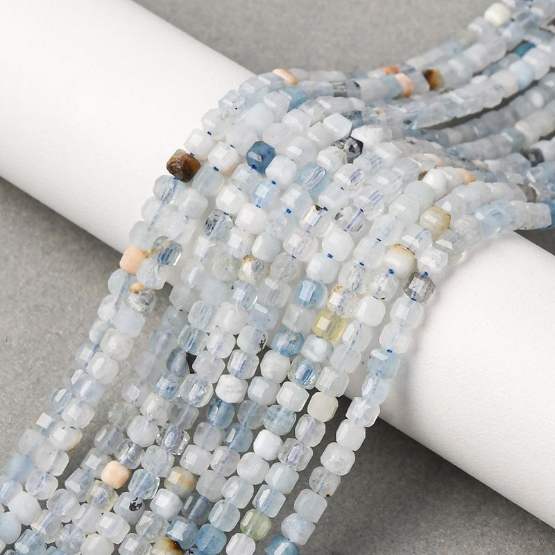 Аквамарин фасетирани мъниста кубче 3х3х3 мм - около 38 см
