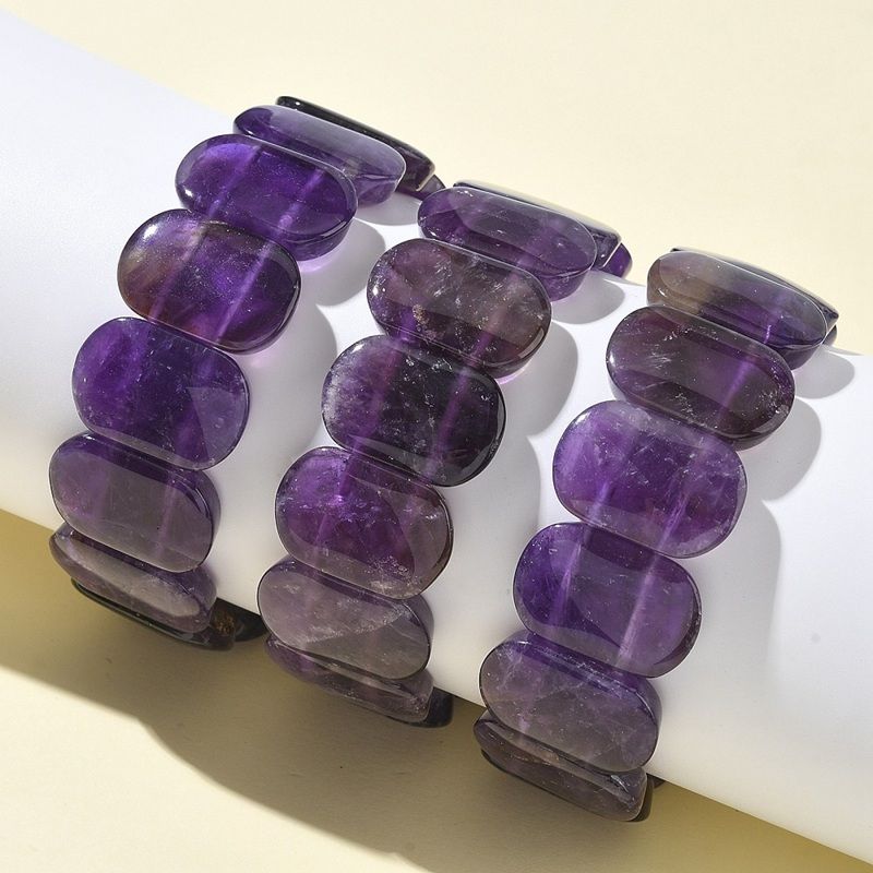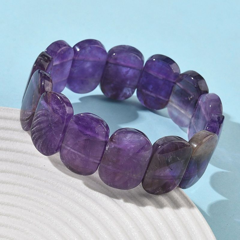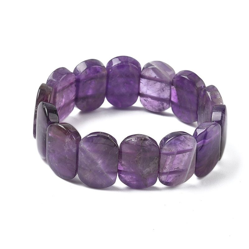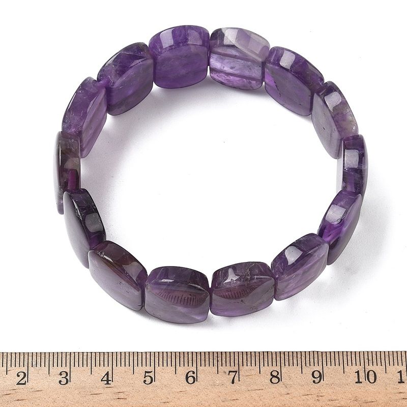 Естествен аметист – еластична гривна с правоъгълни мъниста в богати виолетови нюанси. Класически Унисекс модел.